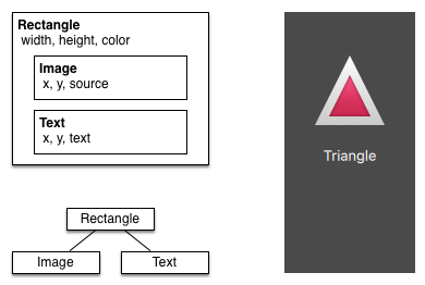 Elements are declared by using their element name but are defined by using their properties or by creating custom properties. A property is a simple key-value pair, e.g. width: 100, text: 'Greetings', color: '#FF0000'. A property has a well-defined type and can have an initial value.