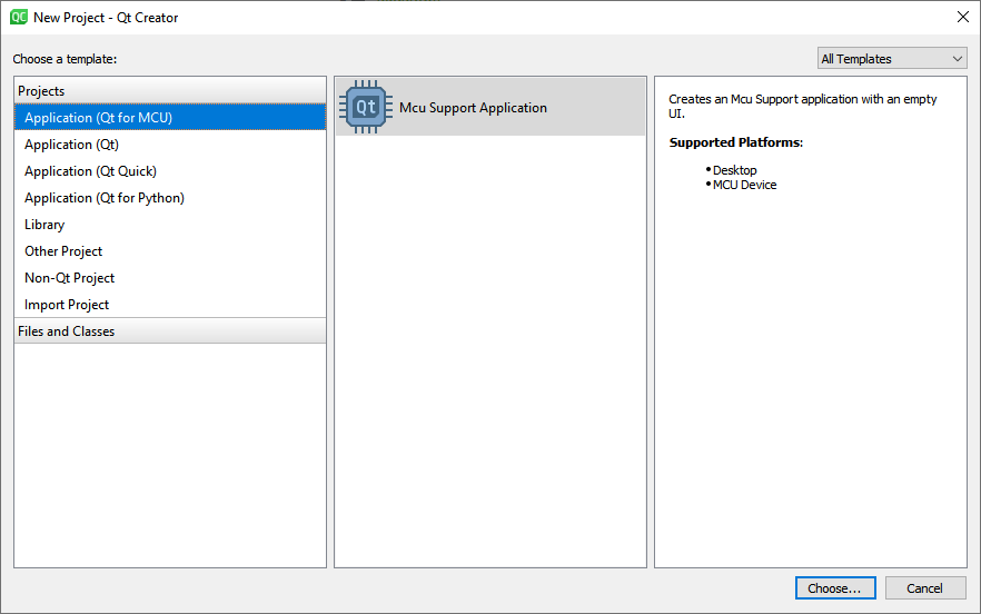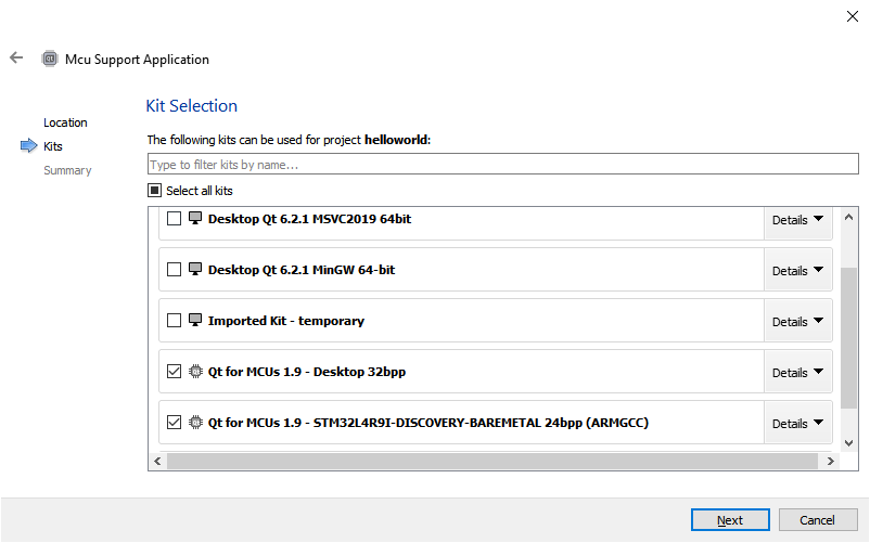 Also, make sure to pick the Qt for MCUs kits when creating your project.
